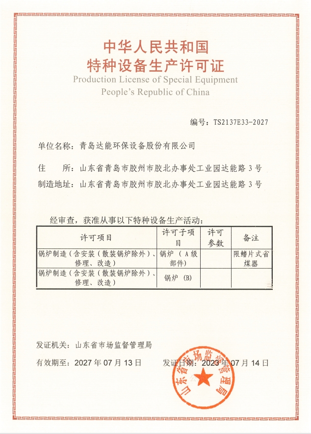 擁有環境工程設計資質、壓力容器、鍋爐制造資質,環保工程、電力施工總承包資質等。